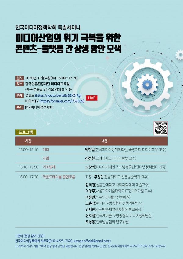 [한국미디어정책학회] 미디어산업의 위기 극복을 위한 콘텐츠-플랫폼 간 상생 방안 모색 세미나 페이지 정보 작성자 관리자 작성일20-10-29 09:05 조회2,472회 관련링크 본문 이전글 다음글 목록