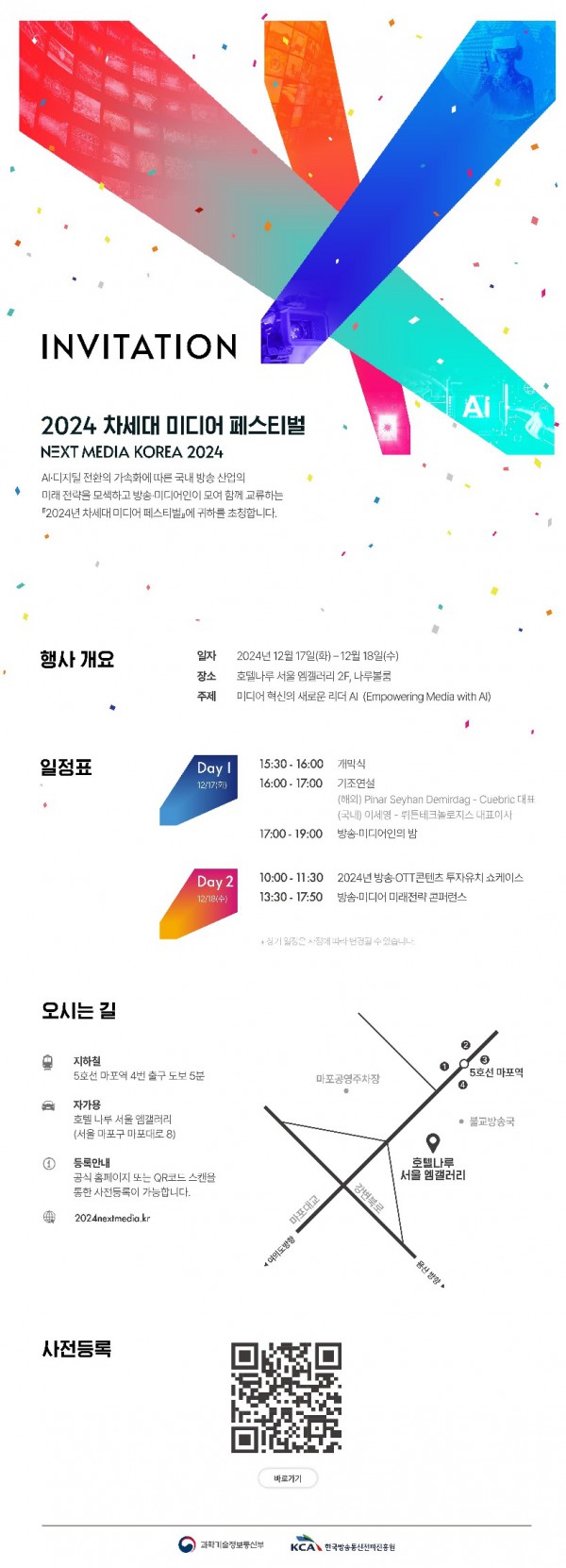 과학기술정보통신부가 주최하고 한국방송통신전파진흥원이 주관하는 <2024년 차세대 미디어 페스티벌> 행사가