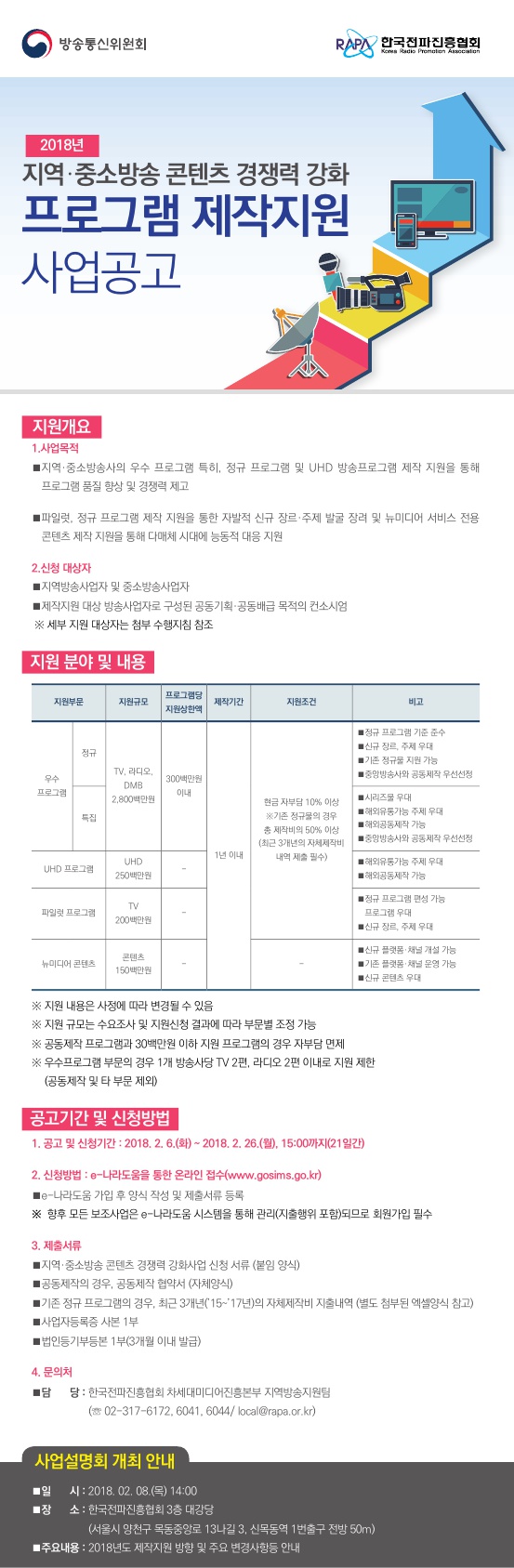 [한국전파진흥협회] 2018년 지역·중소방송 콘텐츠 경쟁력 강화 프로그램 제작지원 공고