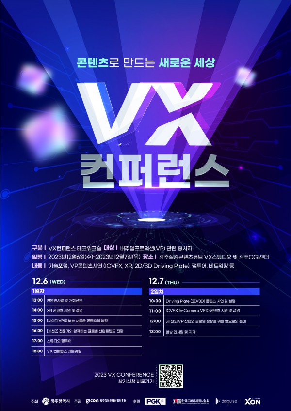 오는 12월 6일~7일 광주정보산업진흥원에서 영화, 드라마, 관련 산업계 전문가들을 초청하여 2023 VX컨퍼런스를