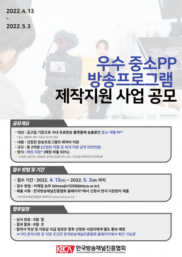 한국방송채널진흥협회,「우수 중소PP 방송프로그램 제작지원 사업」 개시 |