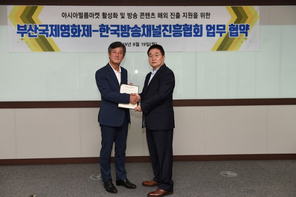 부산국제영화제와 한국방송채널진흥협회의 업무협약식(MOU)이 8월 19일(월) 서울 상암동에 위치한 한국방송채널진흥협회에서 진행되었다. 이날 협약식에는